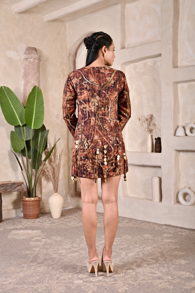 Dry Clean only and store garment in a muslin cloth away from sunlight in a dry environment.