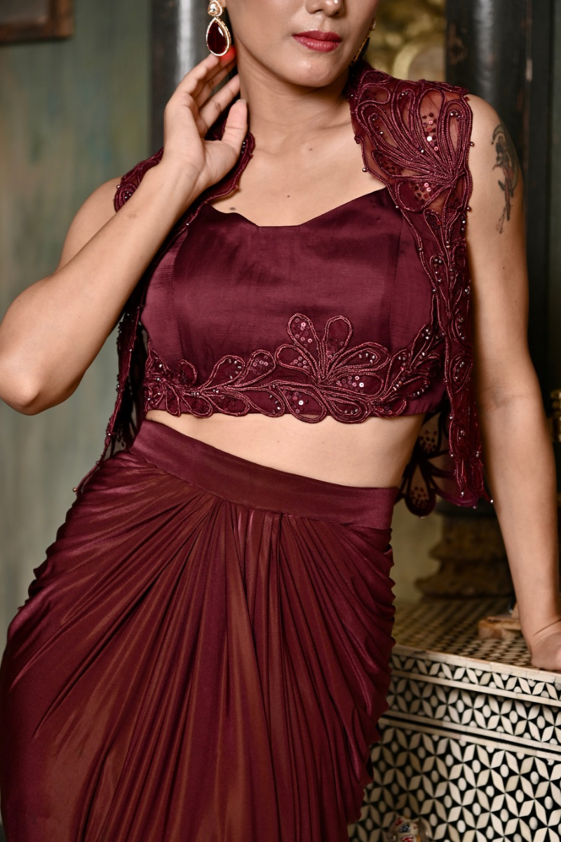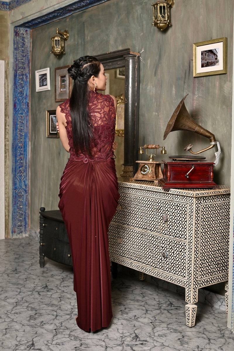 Dry Clean only and store garment in a muslin cloth away from sunlight in a dry environment.